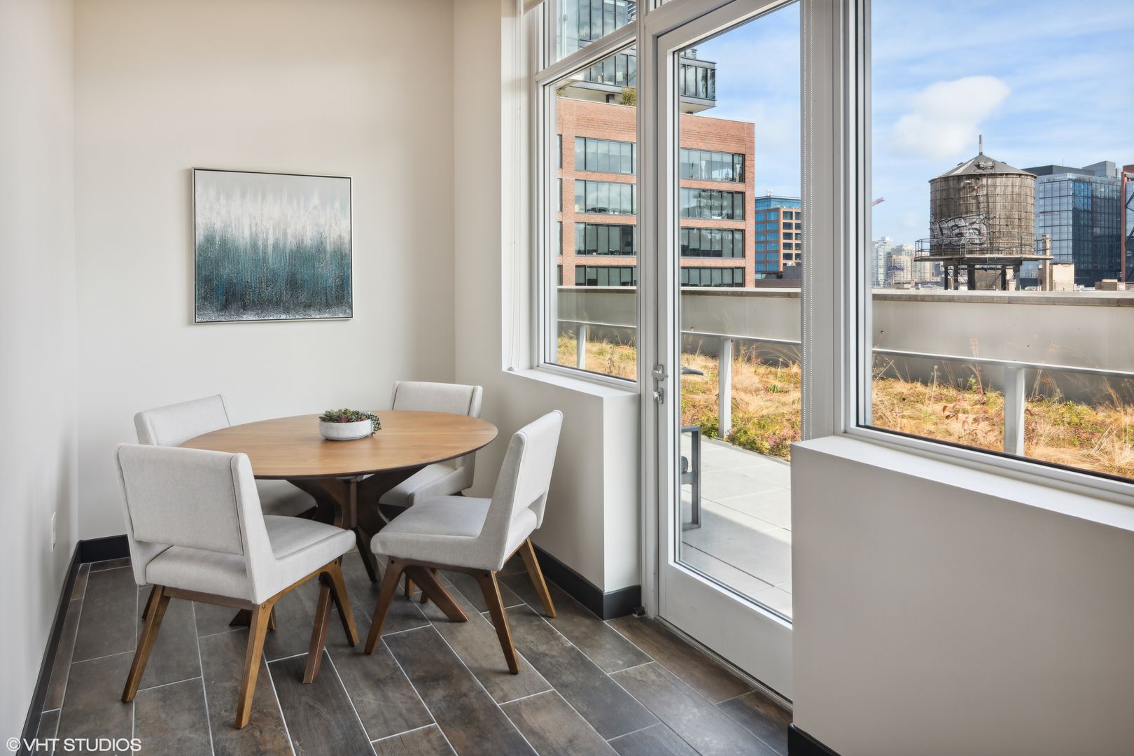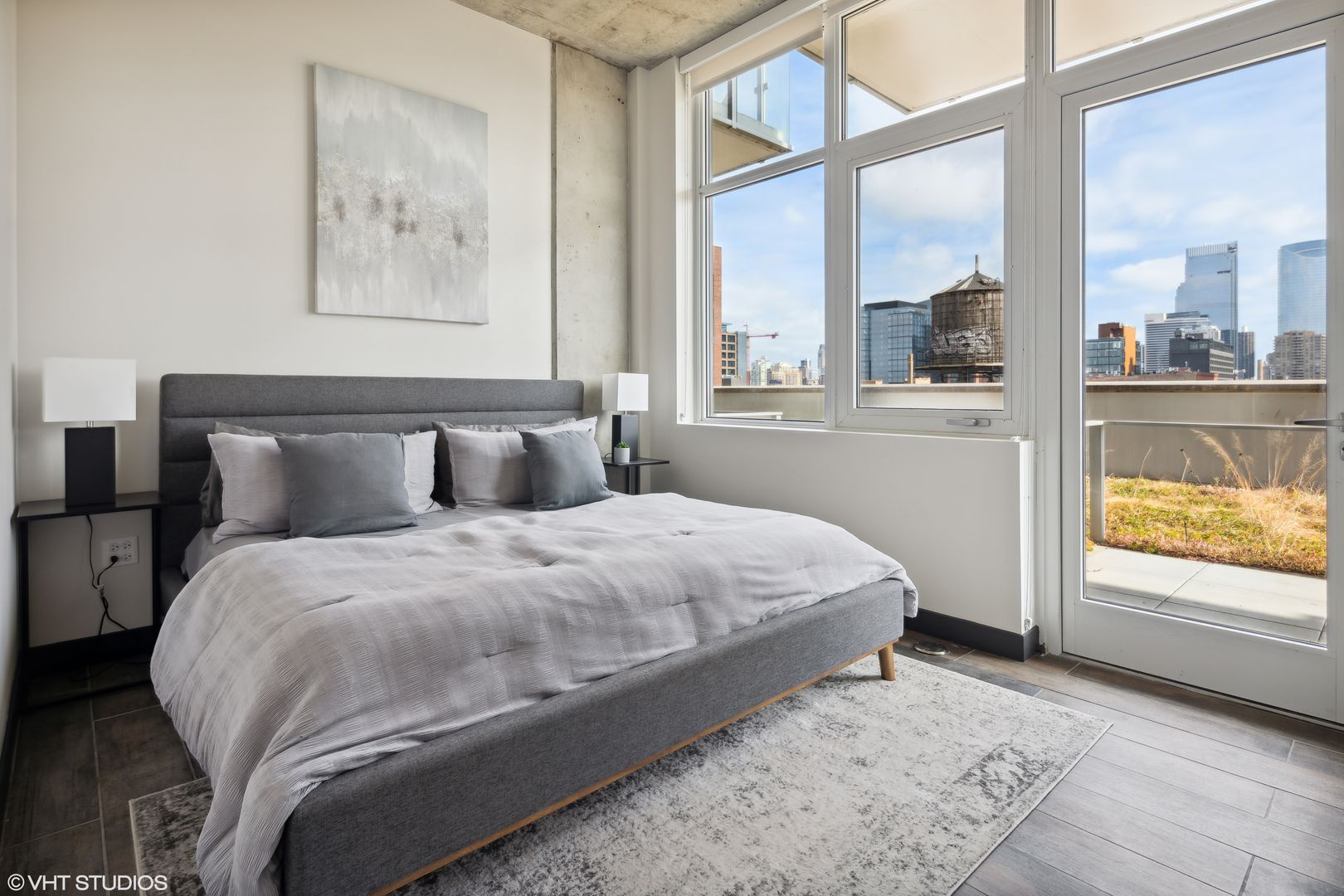 This industrial-chic apartment features an updated eat-in kitchen with Bosch stainless steel appliances & a Bertazzoni range that's perfect for the at home chef. Wake up every morning to stunning downtown views. After a long day, step outside on the oversized private terrace to watch the city sparkle from the evening sunset.